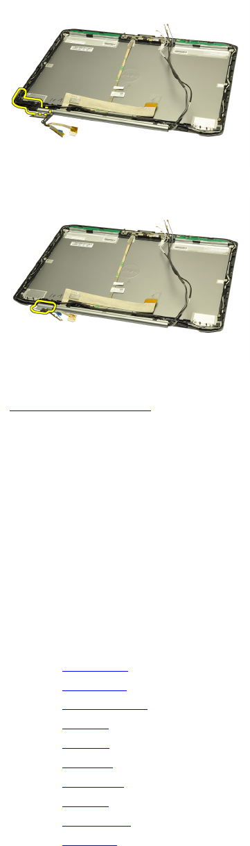 6. Position the antenna cables through the hinge tower slits towards the center of the display cover.