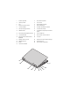 1 conector de modem RJ-11 (opcional) 2 conector de rede RJ-45 3 luz de bateria / luz de alimentação 4 DisplayPort multimodo 5 adaptador de CA 6 encaixe do cabo de segurança 7 conector de vídeo 8 conector eSATA/USB 9 conector PowerShare USB 10 leitor de smart card ATENÇÃO: Não bloqueie, não introduza objectos nem permita a acumulação de poeira nas aberturas de ventilação.