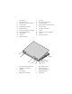 7 volumeknoppen 8 aan-uitknop 9 USB-connectoren (2) 10 Wi-Fi Catcher™-netwerkzoeker 11 schakelaar voor draadloze verbinding 12 audioaansluitingen (2) 13 rechterluidspreker 14 mediacompartiment (met optisch station) 15 vingerafdruklezer (optioneel) 16 sleuf voor PC-kaart 17 IEEE 1394-aansluiting 18 contactloze smartcardlezer 19 SD-geheugenkaartlezer (Secure Digital) 20 touchpad 21 ontgrendeling beeldscherm 22 knoppen voor touchpad/navigatieknop 23 linkerluidspreker 24 track