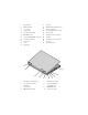 7 8 볼륨 제어 단추 전원 단추 9 USB 커넥터(2개) 10 Wi-Fi Catcher™ 네트워크 탐지기 11 무선 스위치 12 오디오 커넥터(2개) 13 오른쪽 스피커 14 매체 베이(광학 드라이브 포함) 15 지문 판독기(선택사양) 16 PC 카드 슬롯 17 IEEE 1394a 커넥터 18 비접촉식 스마트 카드 판독기 19 보안 디지털(SD) 메모리 카드 판독기 20 터치패드 21 디스플레이 분리 래치 22 터치패드 단추/트랙 스틱 단추 23 왼쪽 스피커 24 트랙 스틱 25 키보드 26 장치 상태 표시등 27 주변광 센서 1 2 10 3 9 4 5 6 7 8 1 RJ-11 모뎀 커넥터(선택사양) 2 RJ-45 네트워크 커넥터 3 전지 표시등/전원 표시등 4 다중 모드 DisplayPort 5 AC 어댑터 6 보안 케이블 슬롯 7 비디오 커넥터 8 eSATA/USB 커넥터 9 US