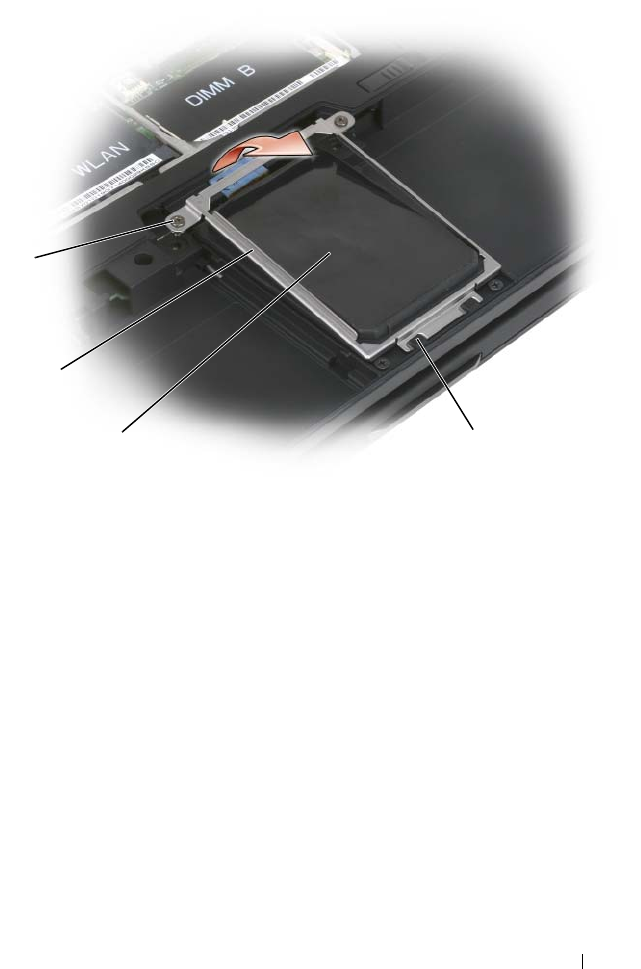 Gebruik het treklipje om de kabel van de vaste schijf uit de aansluiting op