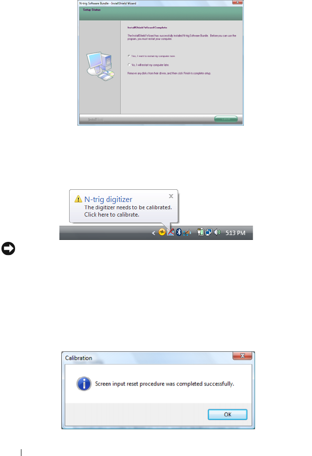 När kalibreringen är färdig, visas ett fönster med ett meddelande som säger