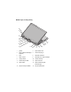 Widok z tyłu, z lewej strony 16 15 14 13 12 11 1 10 9 3 8 6 7 5 2 4 1 głośnik 2 złącze IEEE 1394 3 złącze USB (umożliwiające zasilanie) 4 otwór wentylacyjny 5 pióro 6 wskaźnik LED pióra 7 otwór na pióro 8 wskaźnik pracy dysku twardego 9 uchwyt tabletu 10 zawias obrotowy 11 zasilane złącze USB 12 złącze sieciowe 13 złącze wideo 14 złącze zasilacza prądu przemiennego 15 przycisk cofnięcia tabletu 16 przycisk przewijania