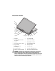 Vista posterior e esquerda 16 15 14 13 12 11 1 10 3 9 8 7 6 5 2 4 1 altifalante 2 conector IEEE 1394 3 conector USB (para partilha de energia) 4 aberturas de ventilação 5 caneta 6 LED indicador de caneta 7 gancho da correia da caneta 8 indicador HDD de energia 9 pega do tablet 10 dobradiça rotativa 11 conector USB com alimentação 12 conector de rede 13 conector de vídeo 14 conector do adaptador de CA 15 botão de retrocesso do tablet 16 botão de controlo de deslocamento