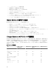 パラメータ 値 – RAID60 — 直前の開始 LBA + ((サイズ ÷(スパンあたりのドライブ数 - 2)) ÷ 512) メモ: このかわりに、開始 LBA を「0xFFFFFFFFFFFFFFFF」に設定すると、仮想ディ スクスライスの開始部分は、最後のスライスの終了直後になるように自動的に 計算されます。 ストライプサイ ズ ストライプエレメントのサイズとは、そのストライプにある各物理ディスク上でス トライプが消費するディスク容量です。ビット単位で次の値を設定できます。 メモ: S110 および H310 コントローラは、64KB のストライプのみをサポートしま す。 – – – – – 64KB = 128 128KB = 256 256KB = 512 512KB = 1024 1MB = 2048 読み取りポリシ ー – – – 先読みなし 先読み 適応先読み 書き込みポリシ ー – – – ライトスルー ライトバック ライトバックの強制 ディスクキャッ シュポリシー – – 有効 無効 仮想ディスクの 名前 オプションで、仮想ディスクに名前を付けることができ