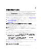 6. Install(インストール)をクリックします。 インストーラがその機能を削除します。 Configuration Manager 用 DLCI のアンインストール Configuration Manager 用 DLCI をアンインストールするには、次の手順を実行します。 1. スタート → コントロールパネル → プログラムの追加と削除 の順にクリックします。 2. Dell Lifecycle Controller Integration 2.1.0 を選択し、削除 をクリックします。 3. 画面の指示に従ってアンインストールを完了します。 または、ダウンロードしたパッケージを使用してアンインストールしていて、UAC が有効化されている 場合は、「ユーザーアカウント制御が有効化されたシステムにおける DLCI での作業」を参照し、それ以 外の場合は、Dell_Lifecycle_Controller_Integration_2.1.0.xxx.