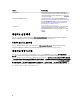 화면에 기본적으로 최신 100개의 로그가 표시됩니다. Pause(일시 중지)를 클릭할 때나 화면에 로그 100개가 모두 표시된 후에만 표시할 로그의 개수를 수정할 수 있습니다. 다음 세부 사항이 표시됩니다. 표 6. Lifecycle Controller 로그 세부 사항 열 설명 호스트 이름 Lifecycle Controller 로그를 보고 있는 시스템의 호스 트 이름입니다. 시스템 컬렉션의 경우에만 표시되며 단일 시스템의 경우에는 표시되지 않습니다. 번호 로그의 순서 번호입니다. 범주 Lifecycle Controller 로그의 범주입니다(예: 구성 서비 스, iDRAC, 인벤토리 등). ID 오류 메시지와 연관된 ID입니다. 오류와 권장 조치 에 대해 자세한 정보를 얻으려면 하이퍼링크를 클릭 하십시오. Dell 지원 웹사이트(dell.com/support/ manuals)에서 최신 메시지 레지스트리를 주기적으 로 다운로드할 수 있습니다.
