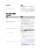 Task Viewer には、次の詳細情報が表示されます。 • • • • • Name(名前) :タスクが実行されているシステムの名前またはサービスタグを示します Task(タスク):システムで実行されているタスクを示します。 Status(ステータス):システムで実行されているタスクのステータスを示します。 Start Date/Time(開始日付 / 時刻):タスクが開始された日付と時刻を示します。 Time Elapsed 経過時間:タスクが開始されてからの経過時間を示します。 また、Task Viewer の右下隅には、実行されている全タスクのステータス概要が表示されます。 単体システムまたはシステムのコレクションでタスクのセットの実行を開始すると、画面の右下隅にあるタ スクバーに Dell アイコンが表示されます。この Dell アイコンをクリックして、Task Viewer を起動し、さまざ まな操作を実行します。 次の表に、Task Viewer で実行可能な操作をリストします。 ボタン 処置 Close(閉じる) クリックして Task Viewer を閉じます。Task View