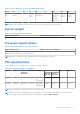 Table 1. Chassis dimension for the PowerEdge T150 system Drives Xa Xb Ya Yb Yc Za Zb Zc 4 x 3.5inch 175 mm (6.88 inches) NA 360 mm (14.17 inches) 362.9 mm (14.28 inches) NA With bezel : 35 mm (17 inches) 400 mm (15.74 inches) 418.75 mm (16.48 inches) Without bezel : NA NOTE: Zb is the nominal rear wall external surface where the system board I/O connectors reside. System weight Table 2. PowerEdge T150 system weight System configuration Maximum weight (with all drives/SSDs) 4 x 3.