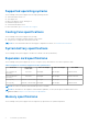 Supported operating systems The PowerEdge T150 system supports the following operating systems: ● ● ● ● ● Canonical Ubuntu Server LTS Citrix Hypervisor Microsoft Windows Server with Hyper-V Red Hat Enterprise Linux SUSE Linux Enterprise Server For more information, go to www.dell.com/ossupport. Cooling fans specifications The PowerEdge T150 system supports the following: ● One system cooling fan located at the back of the system. ● One processor cooling fan located on the heat sink.