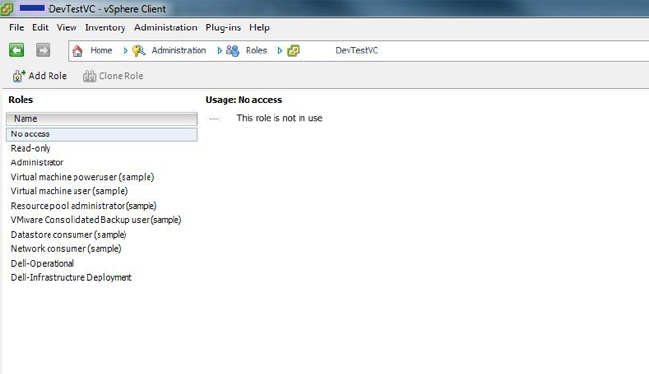 Figure 3. vCenter vSphere Client Roles and Privileges