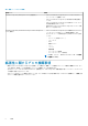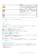 アイコン 重大度レベル 警告 / 非重要 — プローブまたはその他の監視デバイスが、許容 レベル以上または以下の読み取り値のコンポーネントを検出し ました。コンポーネントが引き続き動作している場合もありま すが、故障する可能性があります。正常な機能が損なわれた状 態でコンポーネントが動作している可能性もあります。 重要 / 障害 / エラー — コンポーネントが故障しているか、故障 が差し迫った状態です。コンポーネントに対して迅速な対応が 必要で、交換が必要な場合もあります。データ損失が発生して いる可能性があります。 特定のコンポーネントが監視されていません。 サービスを利用できません。 ビュー 次のビューを使用して、Dell PowerVault MD Storage Array を監視できます。 • • • アラートビュー ダイアグラムビュー 状態ビュー アラートビュー Dell MD Storage Array アラートビュー は、監視している Dell PowerVault MD Storage Array に関連した、リカバリ障害に対するアラ ートを表示します。 監視しているストレージアレ