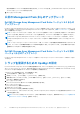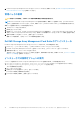進行状況画面にインストールの進行状況が表示されます。インストールの完了後、[InstallShield Wizard Completed(InstallShield ウィザード完了)] ウィンドウが表示されます。 5. [終了] をクリックします。 以前の Management Pack からのアップグレード Dell MD Storage Array Management Pack Suite バージョン 6.0 からの アップグレード Dell MD Storage Array Management Pack Suite 6.0 は、バージョン 6.1 の管理パックをインポートすることによってアップグレードす ることができます。Dell MD Storage Array Management Pack Suite 6.1 をインポートするには、 「管理パックのインポート」で説明さ れている手順に従ってください。 メモ: バージョン 6.