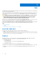 참고, 주의 및 경고 노트: 참고"는 제품을 보다 효율적으로 사용하는 데 도움이 되는 중요 정보를 제공합니다. 주의: 주의사항은 하드웨어의 손상 또는 데이터 유실 위험을 설명하며, 이러한 문제를 방지할 수 있는 방법을 알려줍니다. 경고: 경고는 재산 손실, 신체적 상해 또는 사망 위험이 있음을 알려줍니다. © 2014 ~ 2021 Dell Inc. or its subsidiaries. All rights reserved. Dell, EMC 및 기타 상표는 Dell Inc. 또는 그 자회사의 상표입니다. 다른 상표는 해당 소유자 의 상표일 수 있습니다.