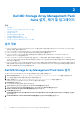 Dell PowerVault MD Storage Array Management Pack Suite 내용물 Dell PowerVault MD Storage Array Management Pack Suite 버전 6.1은 다음 항목과 함께 자동 압축 해제 실행 파일인 Dell_MD_StorageArray_Management_Pack_Suite_v6.1_Axx.exe에 패키지로 제공됩니다. ● Dell_MD_StorageArray_Management_Pack_Suite_x86_x64.exe — Dell PowerVault MD Storage Array Management Pack Suite 설치용 설치 프로그램입니다. ● DellMPv61_MDStorageArray_IG.pdf — Dell PowerVault MD Storage Array Management Pack Suite의 안내서입니다. ● DellMPv61_MDStorageArrayMP_Readme.