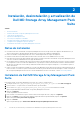 4. Haga clic en Instalar. Una pantalla de progreso muestra el progreso de la instalación. Una vez finalizada la instalación, aparece la ventana Asistente InstallShield completado. 5. Haga clic en Finalizar. Actualización de paquetes de administración anteriores Actualización de Dell MD Storage Array Management Pack Suite versión 6.0 Es posible actualizar desde Dell MD Storage Array Management Pack Suite 6.0 al importar el paquete de administración versión 6.1.