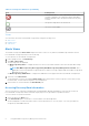Table 4. Severity level indicators (continued) Icon Severity Level Critical/Failure/Error — The component has either failed or failure is imminent. The component requires immediate attention and may need to be replaced. Data loss may have occurred. The specific component is not monitored. The service is unavailable.