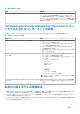 コンポーネント ユニット監視名 説明 デフォルトの時間間隔 Dell MD Array 現在の構成グル ープ 監視対象外 なし。 なし Dell MD Array エンクロージャ Dell MD Storage Array 可用性 ロールアップ MD Storage Array エンクロー なし ジャの依存性監視:エンクロー ジャにある物理ディスクコン ポーネントの総合的な正常性 を示します。 Dell MD アレイの EM モジュー Dell MD Storage Array 可用性 ルグループ ロールアップ MD Storage Array エンクロー なし ジャ管理モジュール用の依存 性監視:エンクロージャにある 物理ディスクコンポーネント の総合的な正常性を示します。 Dell MD Array エンクロージャ グループ Dell MD Storage Array 可用性 ロールアップ MD Storage Array エンクロー なし ジャグループ用の依存性監視: エンクロージャの総合的な正 常性を示します。 Dell MD Array ファングループ Dell M