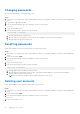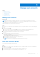 5 Manage user accounts Topics: • • • • • Adding user accounts View user account details Changing passwords Resetting passwords Deleting user accounts Adding user accounts About this task NOTE: In a metro node Metro configuration, metro node CLI accounts created on one management server are not propagated to the second metro node management server. The user list command displays only those accounts that are configured on the local metro node management server, not both server.