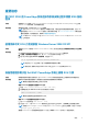 表. 2: 服务器的其他说明文件和视频资源 (续) 任务 说明 位置 要了解 Remote Access Controller https://www.dell.com/idracmanuals Admin (RACADM) 子命令和支持的 RACADM 界面的信息,请参阅适 用于 iDRAC 的 RACADM 命令行参 考指南。 有关更新驱动程序和固件的信息, www.dell.com/support/drivers 请参阅本说明文件中的下载驱动程 序和固件部分。 管理服务器 有关 Dell 提供的服务器管理软件的 https://www.dell.com/openmanagemanuals 信息,请参阅 Dell EMC OpenManage Systems Management 概览指南。 有关安装、使用 OpenManage 以 及进行故障排除的信息,请参阅 Dell EMC OpenManage Server Administrator 用户指南。 https://www.dell.