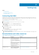 2 Getting help Topics: • • • • Contacting Dell EMC Documentation and video resources Downloading the drivers and firmware Documentation feedback Contacting Dell EMC Dell EMC provides several online and telephone based support and service options. If you do not have an active internet connection, you can find contact information about your purchase invoice, packing slip, bill, or Dell EMC product catalog. Availability varies by country and product, and some services may not be available in your area.