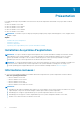Remarques, précautions et avertissements REMARQUE : Une REMARQUE indique des informations importantes qui peuvent vous aider à mieux utiliser votre produit. PRÉCAUTION : Une PRÉCAUTION indique un risque d'endommagement du matériel ou de perte de données et vous indique comment éviter le problème. AVERTISSEMENT : Un AVERTISSEMENT indique un risque d'endommagement du matériel, de blessures corporelles ou même de mort. © 2016 - 2018 Dell Inc. ou ses filiales. Tous droits réservés.