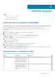 2 Obtención de ayuda Temas: • • • • Cómo ponerse en contacto con Dell|EMC Documentación y recursos de video Descarga de controladores y firmware Comentarios sobre la documentación Cómo ponerse en contacto con Dell|EMC Dell|EMC proporciona varias opciones de servicio y soporte por vía telefónica o en línea. Si no tiene una conexión a internet activa, puede encontrar información de contacto acerca de su factura de compra, su albarán de entrega, su recibo o el catálogo de productos de Dell| EMC.