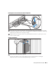 Installing the Power Cord Retention Bracket (Optional) Attach the power cord retention bracket on the right bend of the power supply handle. Bend the system power cable into a loop as shown in the illustration and attach to the bracket’s cable clasp. Repeat the procedure for the second power supply. Plug the other end of the power cables into a grounded electrical outlet or a separate power source such as an UPS or a PDU. Turning on the System Turn on the system and monitor (optional).