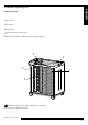 ENGLISH Dell Mobile Computing Cart Exterior Features 1 Sliding Device Compartment Door 3 2 Power Adapter Compartment Door 4 3 Ergonomic Handle 4 Auxiliary Outlets 5 Cooling Fans (Managed Carts only) 6 Power Management Compartment 7 Cord Wrap Bay 8 Upper Compartment 9 Locks 5 6 2 1 7 10 8 10 Power/ Fault Status Indicators (Managed Carts only) 11 Casters 9 11 2 / 13 888-24-270-M-01 rev.