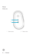Features Mouse Top view 1 2 3 4 6 5 7 8 1 2 3 4 5 Left button Right button Scroll wheel Forward button Backward button 6 Connection-mode lights • White LED Blinking: Device is not connected to computer • LED Lighting Solid White: Device is connected to computer • Amber LED Blinking: Device battery is low 7 8 Connection-mode button PPID label Features │ 5
