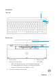 Features Keyboard Top view 1 2 3 Bottom view 4 5 1 2 Power switch 4 Battery cover Connection-mode lights 5 PPID label • White LED Blinking: Device is not connected to computer • LED Lighting Solid White: Device is connected to computer • Amber LED Blinking: Device battery is low 3 Connection-mode switch button Features │ 7