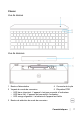 Clavier Vue de dessus Vue de dessous 1 Bouton d'alimentation 4 Couvercle de la pile 2 Voyants du mode de connexion 5 Étiquettes PPID • LED blanc clignotant : L’appareil n’est pas connecté à l’ordinateur • LED blanc fixe : L'appareil est connecté à l'ordinateur • LED orange clignotant : La batterie de l'appareil est faible 3 Bouton de sélection du mode de connexion Caractéristiques │ 7
