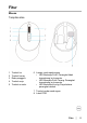 Fitur Mouse Tampilan atas 1 2 3 4 5 Tombol kiri Tombol kanan Roda penggulir Tombol maju Tombol mundur 6 Lampu mode sambungan • LED Berkedip Putih: Perangkat tidak tersambung ke komputer • LED Menyala Putih Terang: Perangkat tersambung ke komputer • LED Berkedip Kuning: Daya baterai perangkat rendah 7 Tombol mode sambungan 8 Label PPID Fitur │ 5