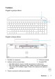 Tastatura Pogled s gornje strane Pogled s donje strane 1 Prekidač za napajanje 4 Poklopac baterije 2 Indikatori režima povezivanja 5 Oznaka PPID • Beli LED indikator treperi: Uređaj nije povezan s računarom • Beli LED indikator neprekidno sija: Uređaj je povezan s računarom • Tamnožuti LED indikator treperi: Nizak nivo napunjenosti baterije u uređaju 3 Taster za promenu režima povezivanja Osobine │ 7