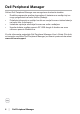 Dell Peripheral Manager Softver Dell Peripheral Manager vam omogućava da obavite sledeće: Dodelite programske prečice dugmadima ili tasterima na uređaju koji se mogu programirati na kartici Action (Radnja). Prikažete informacije o uređaju kao što su verzija firmvera i status baterije na kartici Info (Informacije). Instalirate najnovija ažuriranja firmvera na vašim uređajima. Uparite dodatne uređaje pomoću RF USB dongla ili direktno na svom računaru pomoću Bluetooth-a.