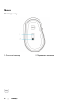 Поєднання в пару бездротової миші Бездротову мишу Dell можна поєднати в пару з пристроями по USB і Bluetooth. Можна поєднатися в пару і перемикатися між ноутбуком, стаціонарним комп'ютером і сумісним мобільним пристроєм. Поєднання в пару з пристроєм USB ПРИМІТКА: Можна підключити пристрій до бездротової миші за допомогою універсального поєднання в пару Dell. 1. Вставте універсальний ключ USB Dell до порту USB на комп'ютері. ПРИМІТКА: Пристрій радіочастот має фабричне поєднання в пару.