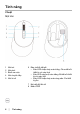 Tính năng Chuột Mặt trên 1 2 3 4 5 Nút trái Nút phải Bánh xe cuộn Nút chuyển tiếp Nút lùi về 6 Đèn chế độ kết nối • Đèn LED nhấp nháy màu trắng: Chưa kết nối thiết bị với máy tính • Đèn LED sáng một màu trắng: Đã kết nối thiết bị với máy tính • Đèn LED nhấp nháy màu vàng nâu: Pin thiết bị yếu 7 Nút chế độ kết nối 8 Nhãn PPID 6 │ Tính năng