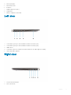 4 Camera (IR/RGB) 5 Camera status LED 6 IR emitter 7 Ambient Light Sensor (ALS) 8 Display panel 9 Battery / Diagnostics status LED Left view 1 USB 3.1 Gen2 Type-C port with Thunderbolt 3 and Power Delivery (PD) 2 USB 3.1 Gen2 Type-C port with Thunderbolt 3 and Power Delivery (PD) 3 HDMI 1.4 Port 4 USB 3.1 Gen 1 Type-A Port (With PowerShare and Power On /Wake support on WLAN ) 5 Smart card reader (optional) Right view 1 3.