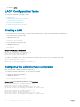 To create a dynamic port channel (LAG), use the following command. First you dene the LAG and then the LAG interfaces.