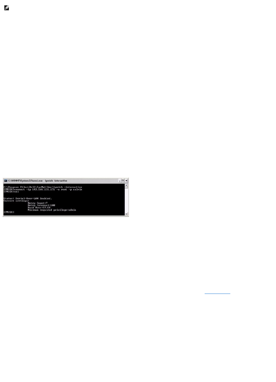 ANMERKUNG: Die Befehlseingabeaufforderung antwortet mit einer Fehlermeldung, wenn ein Befehl vor dem Erstellen einer IPMI-Sitzung mit