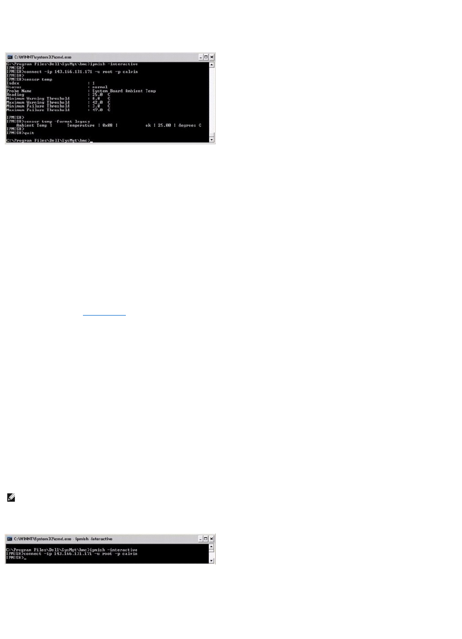 Dieser Befehl stellt eine IPMI-Verbindung mit dem Remote-Server im interaktiven Modus her, um den Benutzer zu aktivieren um Server-Verwaltungsaktivitäten