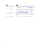 表 6. OMSA およびファームウェアバージョン Dell デバイス 対応 OMSA バージョン 対応ファームウェアバー ジョン 8.0.1、7.4、および 7.3 該当なし Dell ワークステーション 8.0.1 該当なし iDRAC8 該当なし 2.00.00.00 iDRAC7 該当なし 1.57.57 および 1.56.55 iDRAC6 モジュラー 該当なし 3.6 および 3.5 iDRAC6 モノリシック 該当なし 1.97 および 1.96 DRAC5 該当なし 1.6 および 1.5 FX2 CMC 該当なし 1.1 VRTX CMC 該当なし 1.31 および 1.30 CMC 該当なし 4.50 および 4.45 Dell PowerVault NX 第 10 世代(10G)から第 12 世 代(12G)のストレージアレイ 7.4 および 7.3 該当なし Dell Compellent ストレージアレイ 該当なし 6.