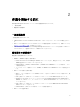 メモ、注意、警告 メモ: コンピュータを使いやすくするための重要な情報を説明しています。 注意: ハードウェアの損傷やデータの損失の可能性を示し、その問題を回避するための方法を説明して います。 警告: 物的損害、けが、または死亡の原因となる可能性があることを示しています。 著作権 © 2015 Dell Inc. 無断転載を禁じます。 この製品は、米国および国際著作権法、ならびに米国および国際知的財産 法で保護されています。Dell™、およびデルのロゴは、米国および / またはその他管轄区域における Dell Inc. の商標です。 本書で使用されているその他すべての商標および名称は、各社の商標である場合があります。 2014 - 12 Rev.