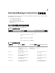 Dell 设备 控制台启动工具 Dell N 系列交换机 Dell OpenManage Switch Administrator 控制台 Warranty Report Information 支持的 Dell 设备 (除 W 系列移动控制器) 注: 需要活动 Internet 连接以检索 Dell 设备的保修报告信息。 表. 20: Dell 一对多控制台启动 Dell 设备 控制台启动工具 支持的 Dell 设备 OpenManage Essentials (OME) 控制台 Dell PowerVault MD 存储 MD Storage Manager 控制台 阵列 支持的 Dell 交换机 Dell OpenManage Network Manager 控制台 Dell W 系列交换机 Dell AirWave Management Platform 控制台 表.
