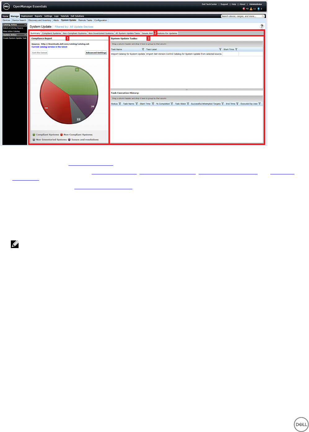 1. From OpenManage Essentials, click Manage → System Update → Select a Catalog Source.