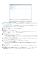 • パスワード テキストボックスにパスワードを入力します。パスワードは 127 文字に制限されています。 メモ: iDRAC Express または Enterprise カードがないサーバーでは、iDRAC テスト接続結果は、このシステムには 該当しませんが表示されます。 メモ: OMSA 資格情報は、ESX および ESXi ホストに使われたものと同じです。 • • パスワードの確認 テキストボックスにパスワードを再度入力します。 証明書チェックのドロップダウンリストから、次のいずれかを選択します。 • • 今後すべての接続の際にホスト証明書をダウンロードおよび保存して、証明書の検証を行うには、有効 を選択しま す。 ホスト証明書のチェックを行わず、保存しない場合は、無効 を選択します。 8. 次へ をクリックします。 9. 接続プロファイルのテストページで、次のいずれかを行います。 • • テストを開始するには、選択したテスト をクリックします。その他のオプションはアクティブになっていません。 テストを中止するには、すべてのテストを中止 をクリックします。 10.