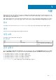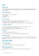 - 참고, 주의 및 경고 노트: 참고"는 제품을 보다 효율적으로 사용하는 데 도움이 되는 중요 정보를 제공합니다. 주의: 주의사항은 하드웨어의 손상 또는 데이터 유실 위험을 설명하며, 이러한 문제를 방지할 수 있는 방법을 알려줍니다. 경고: 경고는 재산 손실, 신체적 상해 또는 사망 위험이 있음을 알려줍니다. © 2010 - 2020 Dell Inc. or its subsidiaries. All rights reserved. Dell, EMC 및 기타 상표는 Dell Inc. 또는 그 자회사의 상표입니다. 다른 상표는 해당 소유자 의 상표일 수 있습니다.