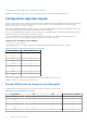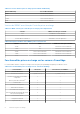 Tableau 13. Appliance virtuelle Numéro de port Protocol es 2049/111 NFS UDP/TC P Aucun 4001 à 4004 NFS UDP/TC P N'importe UDP/TC lequel P Défini par l'utilisateu r Type de Niveau de Directio port chiffrement n maximum Destination Utilisation Description Entrée/ Sortie Appliance OMIVV vers NFS Partage public Partage public NFS exposé par l’appliance OMIVV vers les nœuds gérés et utilisé dans la mise à jour de firmware et les flux de déploiement du système d’exploitation.