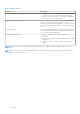 Table 10. Chassis information Chassis inventory Duration (MM: SS) Displays the duration of the job in minutes and seconds Start Date and Time Displays the date and time when the inventory schedule started End Date and Time Displays the time the inventory schedule ended NOTE: The chassis inventory is not supported on the following PowerEdge servers: C6320P, C6320, C4130, and C6420.