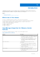 Contents Chapter 1: Introduction................................................................................................................. 9 Whats new in this release..................................................................................................................................................9 OpenManage Integration for VMware vCenter features...........................................................................................9 Chapter 2: About Administration Console.........